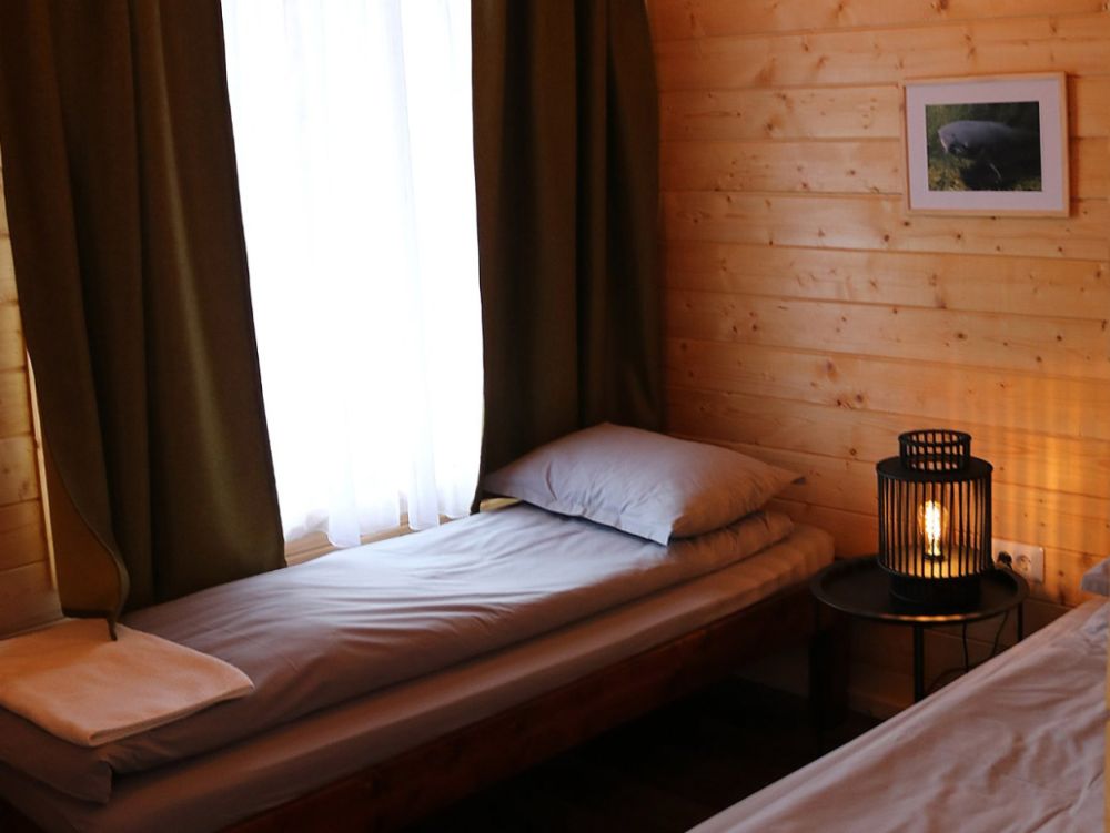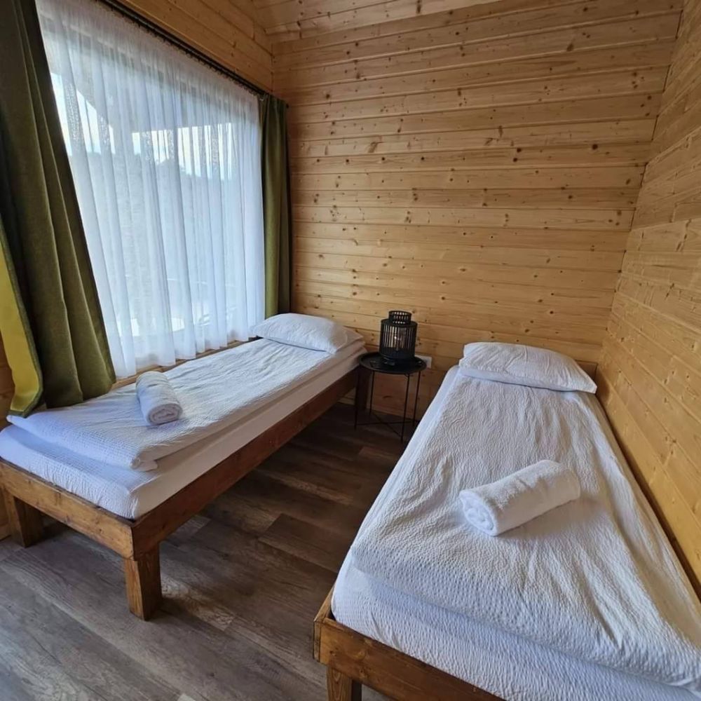 Oaspeții beneficiază de cazare în căbănuțe premium cu design rustic și finisaje de lux, dotate complet cu baie proprie, chicinetă, climatizare, internet prin fibră optică și televiziune, asigurând o experiență relaxantă fără compromisuri.