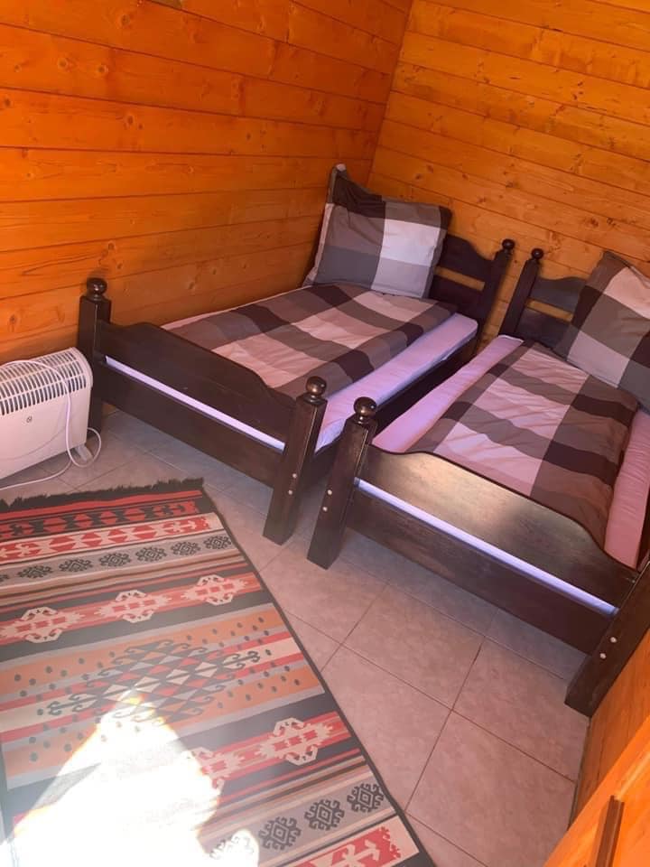 - o căsuța cu doua paturi pentru doua persoane , un calorifer electric pentru sezonul rece ,