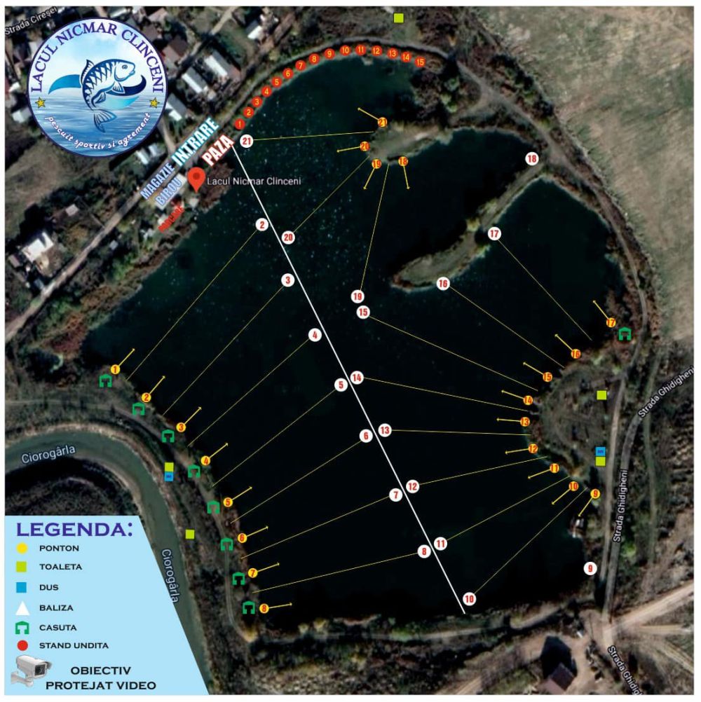 - Atentie ‼️ În incinta lacului sunt amplasate camere video autorizate. Cel care va fi prins că sustrage (ascunde) pește, se va face vinovat de furt si va fi reținut până la sosirea forțelor de pază specializată și a organelor de politie.
