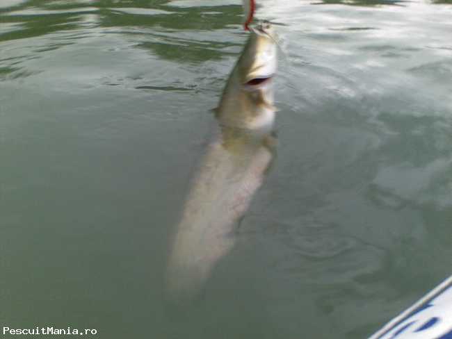 m-am trezit la 4 an dimineatza asta hotarat sa prind cateva ore de pescuit anainte sa se ancalzeasca, pt ca an ultimile zile ne-a topit, avem peste 36-37 grade an fiecare zi. Dar atat m-am coit ca am ajuns pe balta abia la 7, si nu fac decat 1 jumate de ora de acasa. Am intrat cu Kaiacul, ca de obicei, am cautat un cotlon care stiam eu ca se acolo se ascund balauri, si am anceput sa arunc. La a 4 sau a 5-cea aruncare ...hop un somotei de asta. An continuare an nici jumatate de ora am mai luat 3 identici ,parca ereau gemeni. Apoi am dat pana la ora 10 si nu am mai avut nici o trasatura. Am strans si am plecat, poate maine am noroc sa scot un "exemplar". Aaaa.. cei 4 somni pitici au fost eliberatzi imediat!!! Nu stiu cat ar fi putut sa cantareasaca, dar nu asta conteaza pt mine.